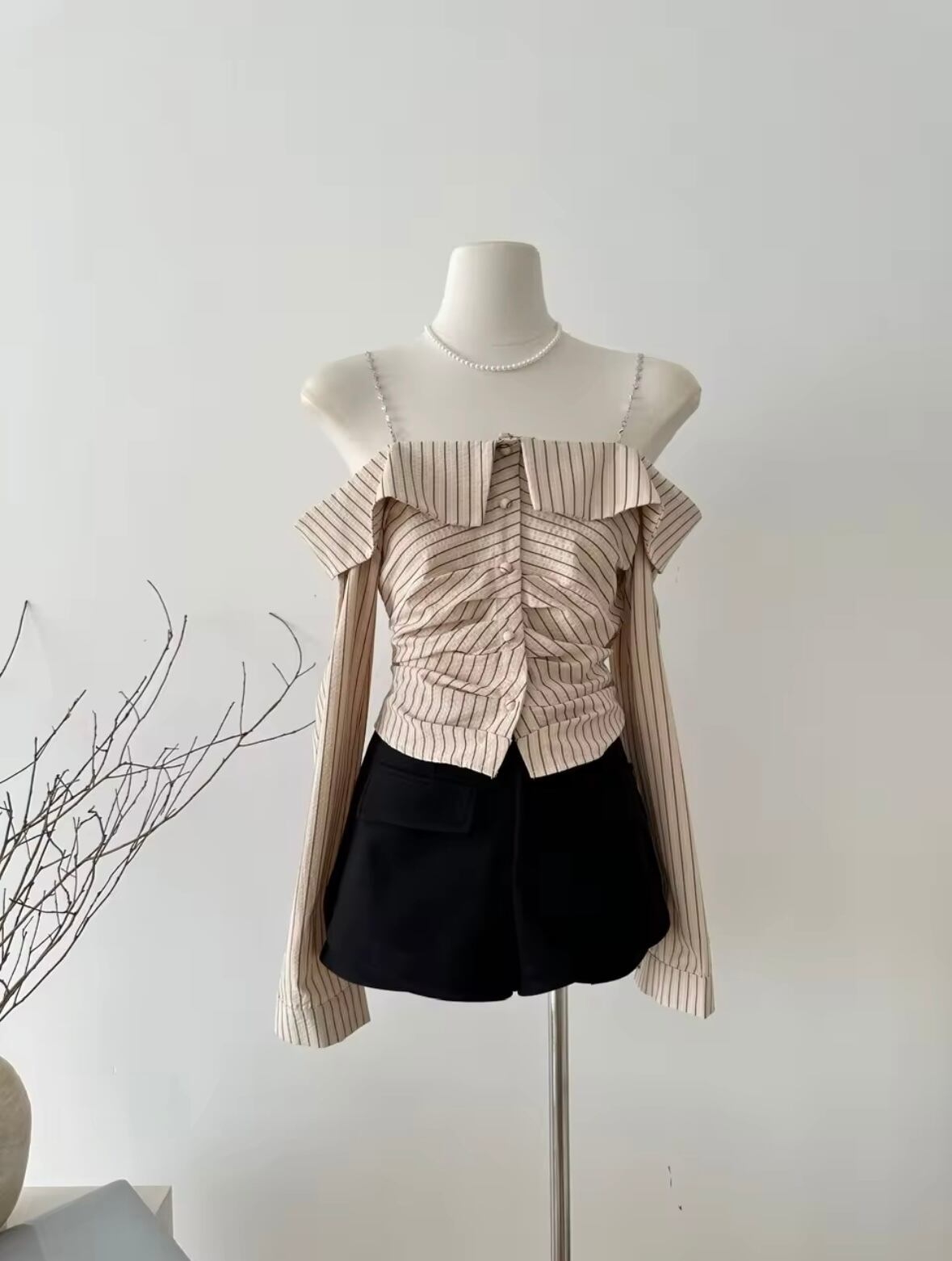 オフショルダーのデザインでおしゃれなストライプトップス。肩を露出させることで女性らしさを引き立て、さらにストライプ柄が洗練された印象を与えます。軽やかな生地感で、暑い季節にも快適に着用できます。シンプルながらもこなれ感のある一枚は、様々なコーディネートに活躍してくれること間違いなしです。