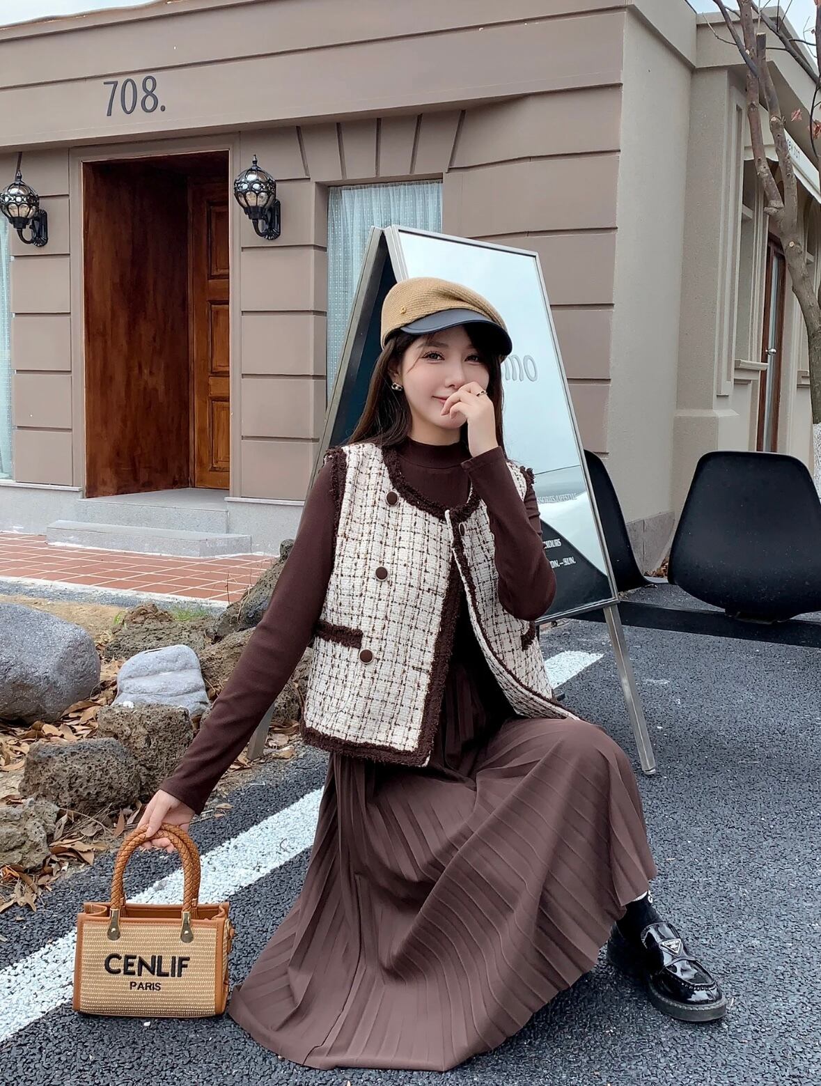 ツイードベストワンピースは、上品なツイード生地が華やかさを演出し、ベストとワンピースを別々にコーディネートして着ることもできるので、着こなしの幅が広がります。